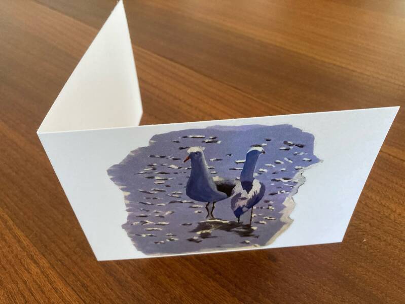 Wenskaart meeuwen (oorspronkelijk schilderij in acryl) Formaat kaart 14,7 x 10 cm.